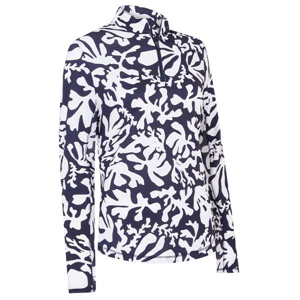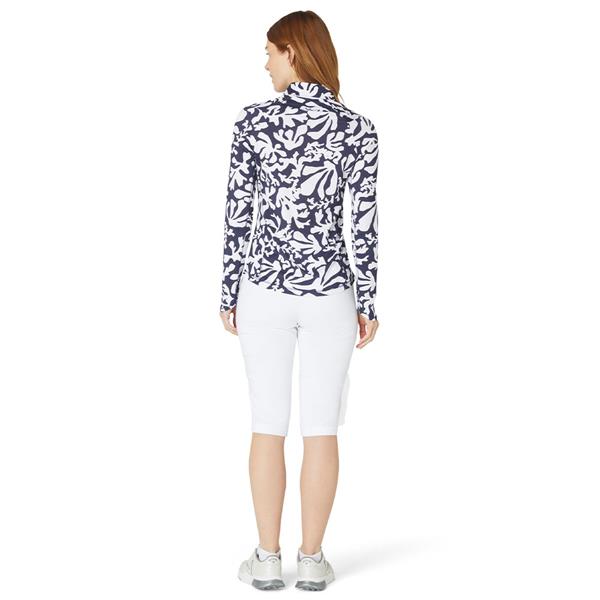This Callaway women's long sleeve golf top makes a practical addition to your golf wear wardrobe. Stretch technology makes it easy to move in while sun protection blocks harsh UV rays during your game. This long sleeve golf shirt includes a quarter zipper closure, so you can customize your look while the summer floral print adds stylish flair.