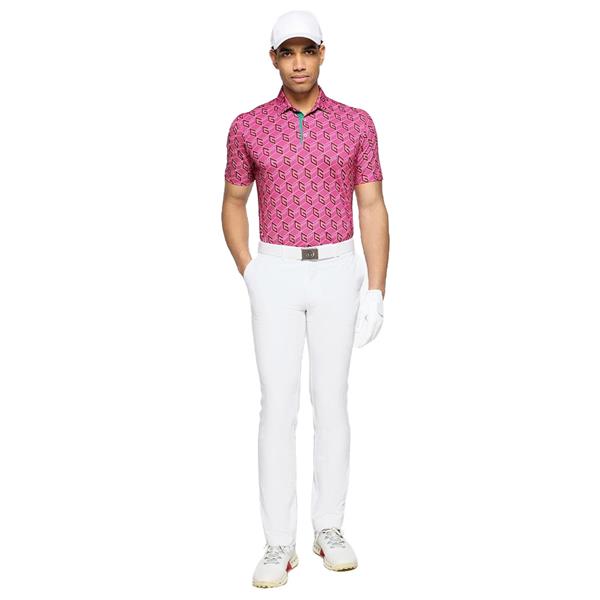 The Martinez golf shirt, part of the Tournament Time collection, combines modern style with high-performance features. Made with VENTIL8™ PLUS technology, this shirt is breathable and quick-drying, ensuring comfort throughout your round. The striking G print and contrasting green or pink plackets give the shirt a fresh, contemporary look, while the stretch fabric provides freedom of movement. Tailored collar and single fold sleeve hem add refined detailing, and UV protection 20+ keeps you shielded from the sun.