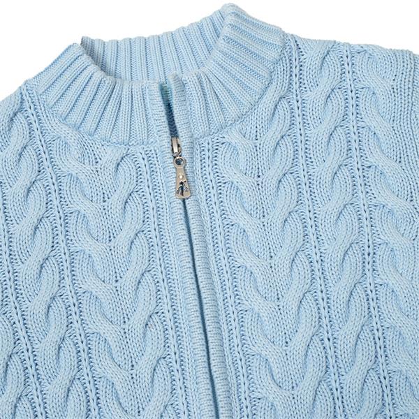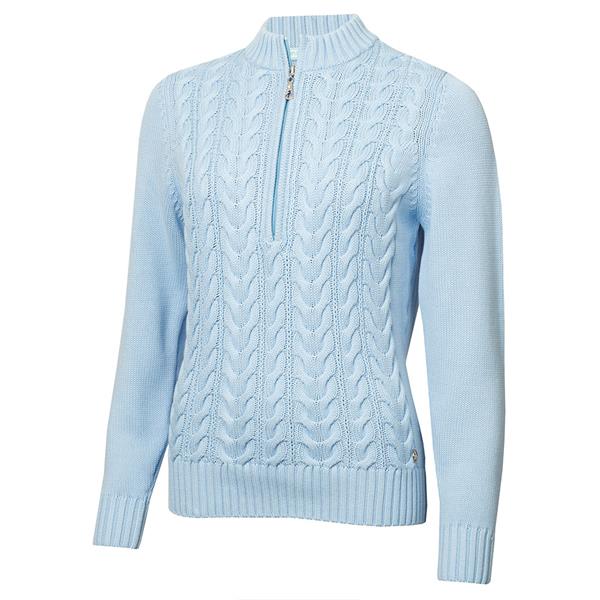 Green Lamb Ladies ½ Zip Chuncky Cable Sweater Baby Blue