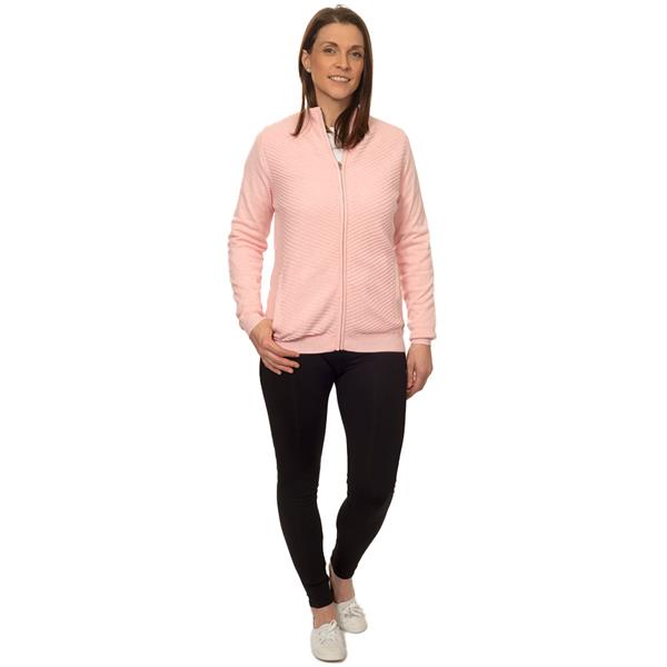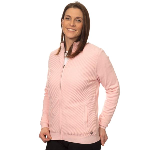 Green Lamb Ladies Full Zip Lined Cardigan with Diagonal Stitch Soft Pink