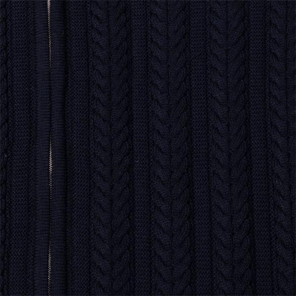 A striking full zip style with tonal cable knit pattern on the front panels.