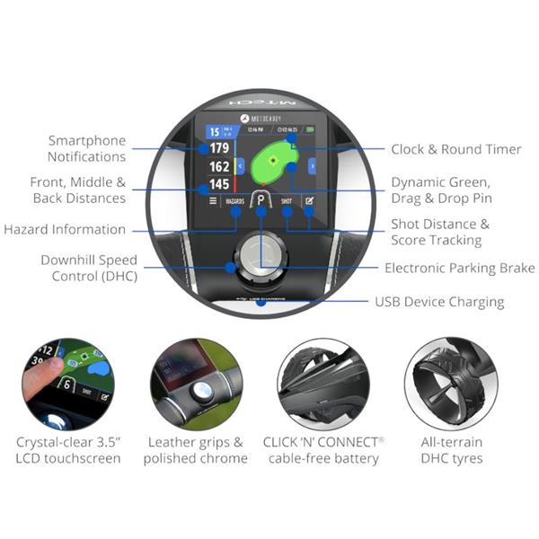 The M-TECH GPS combines fast, accurate touchscreen GPS for over 40,000 courses, with luxury finishes and striking design to produce the ultimate in golf club transportation.