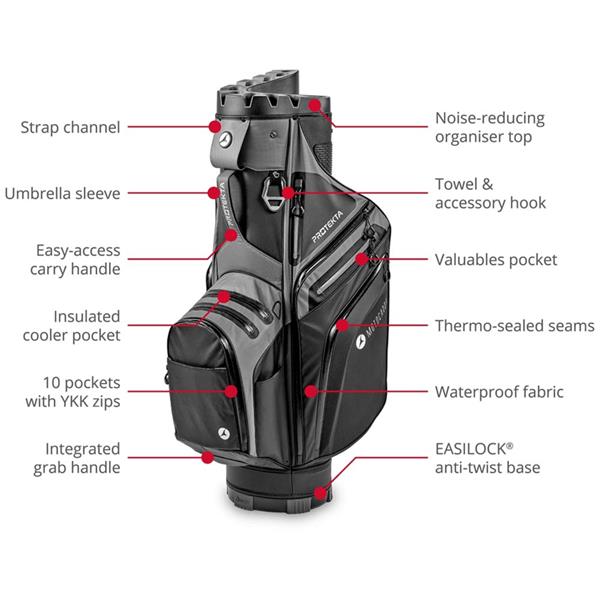 Crafted from durable, waterproof TPU Nylon fabric, the PROTEKTA helps to keep your gear dry in all conditions, thanks to thermo-sealed zips and seams. Top-quality Japanese YKK zips provide smooth, snag-free opening, ensuring effortless access to on-course essentials.