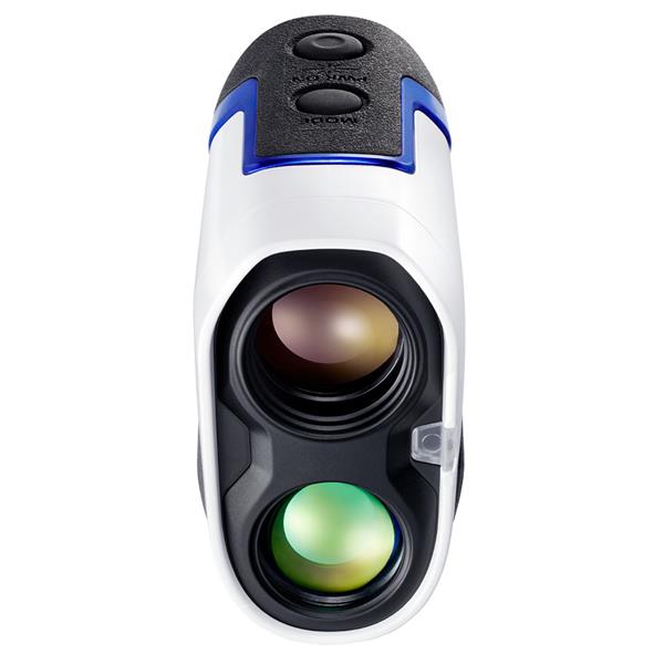- First Target Priority mode is employed. When measuring overlapping subjects, the distance of the closest subject is displayed — useful when golfing for measuring the distance to a flagstick on a green with woods in the background.