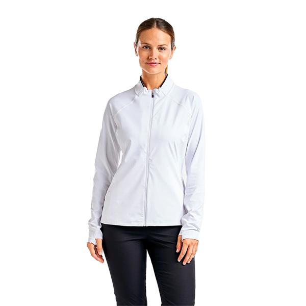 The Alyssa cardigan from NVO sets itself apart with a guaranteed perfect fit that accommodates your every movement on the golf course. It has a sun protection factor of 40+, so you can spend time outdoors knowing you're protected from the suns harmful rays. The quick-drying and moisture-wicking materials keep you feeling fresh and cool all day while you walk from one hole to the next. The Alyssa cardigans versatile design makes it a great addition to your wardrobe. It adapts to all outdoor activities.
