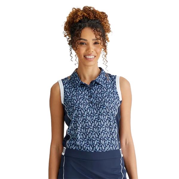Ping Ladies Colleen Sleeveless Printed Polo Shirt Paradise Garden - Navy