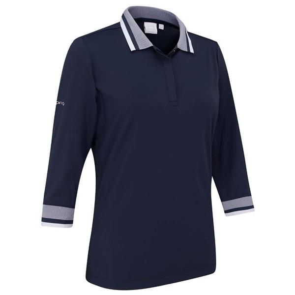 Ping Ladies Lindsey 3/4 Sleeve Polo Shirt Navy - White