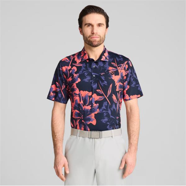 Puma Gents MATTR Broken Flower Polo Shirt Navy - Orange