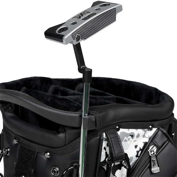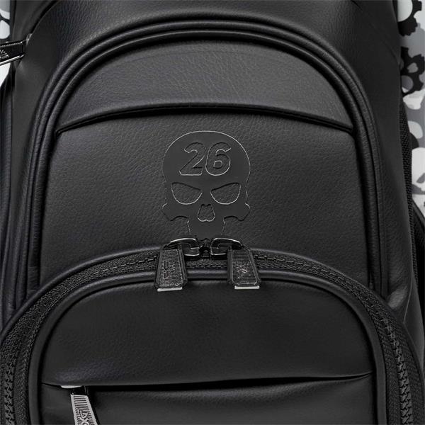 Our Deluxe Hybrid Stand Bag has all the bells, whistles, and style your game demands. Designed with a smooth, matte black finish and skull camo print accents, this refined bag has a 6-way top with external putter attachment and 14 total pockets to organize your essentials. Features include carbon fiber stand legs with magnetic feet, a padded back panel, patented magnetic putter attachment, and microfiber-lined valuables pocket with combination lock.