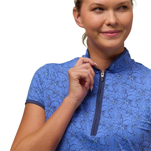 Zero Restriction Ladies Chole Cap Sleeve Zip Mock Neptune